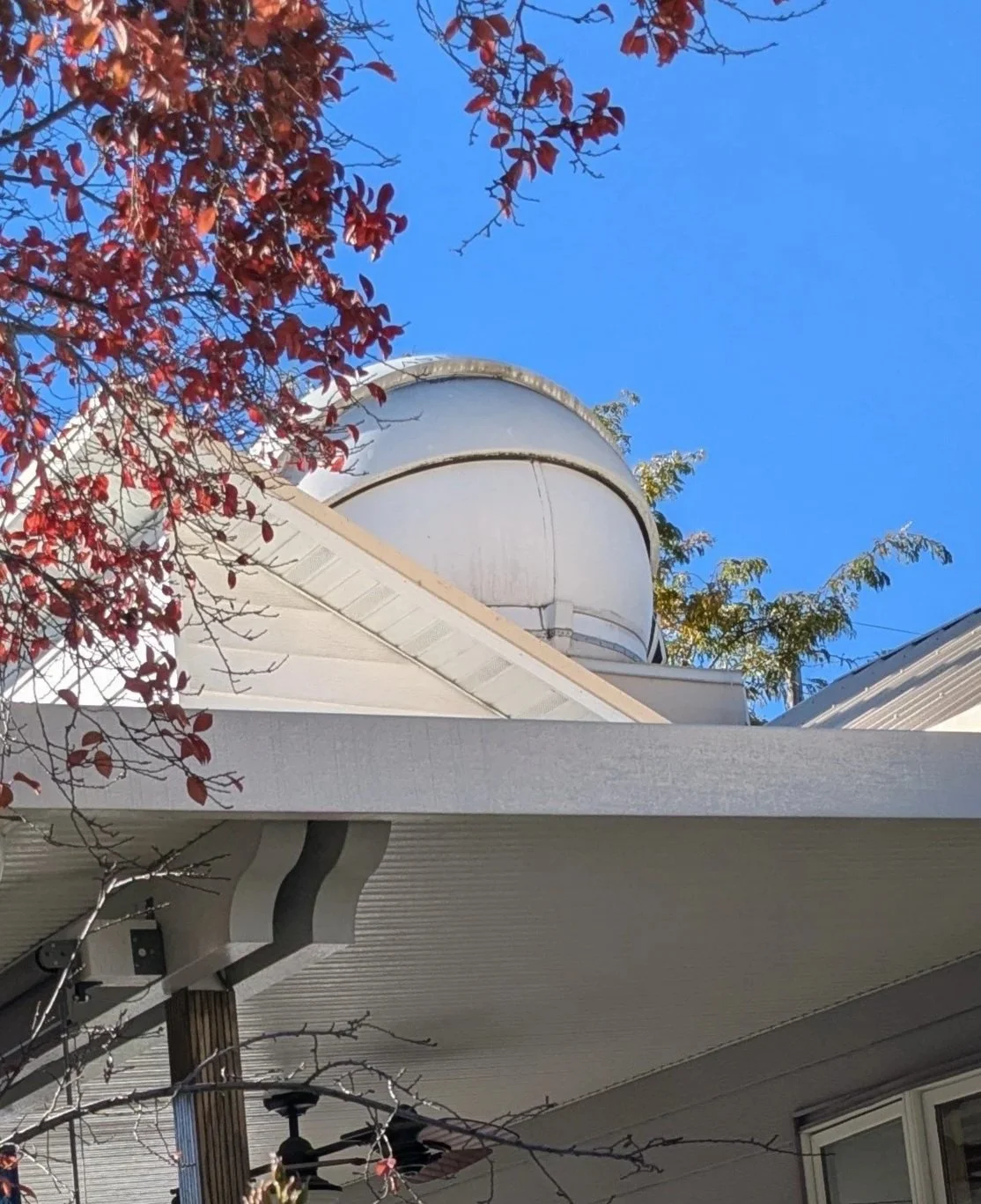 With its distinctive astro-observatory dome on its rooftop, many neighbors have expressed interest in seeing the amazing night sky images captured by the state-of-the-art Vaonis Stellina telescope in its enclosure. For this reason, our family invites you to join us on our side-porch for a fun evening where a celestial body will be projected on a large movie screen for your enjoyment. You will be able to see the “image stacking” process taking place in real-time while your host describes some fascinating facts about the very distant object under observation. Did you know that one light-year is the distance light travels in one earth-year? This distance is about 5.9 trillion miles! Amazingly, the distance of the images to be shared will be thousands to millions of light-years away!!
